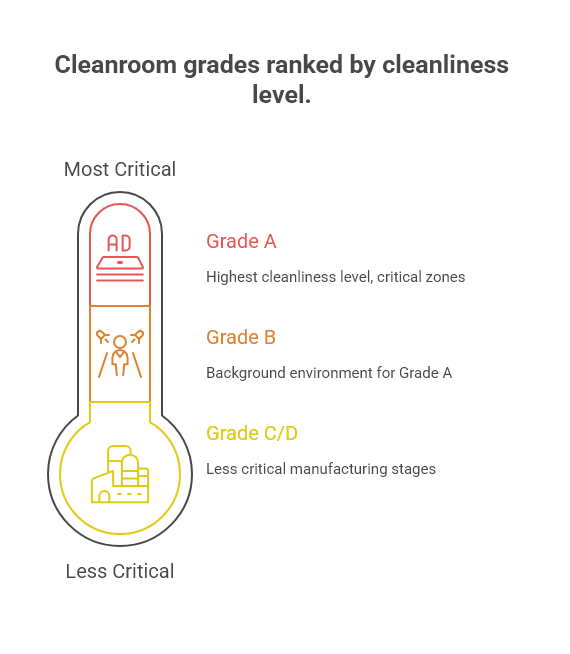 Grade C and D: Clean areas for carrying out less critical stages of manufacturing.